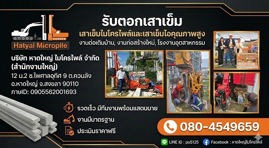 มุ่งสู่การเป็นผู้นำด้านนวัตกรรมงานฐานรากและเสาเข็มไมโครไพล์ที่ครบวงจรที่สุดในภาคใต้ โดยยึดมั่นในมาตรฐานวิศวกรรมและความปลอดภัยสูงสุด เพื่อความมั่นคงที่ยั่งยืนของทุกโครงสร้าง